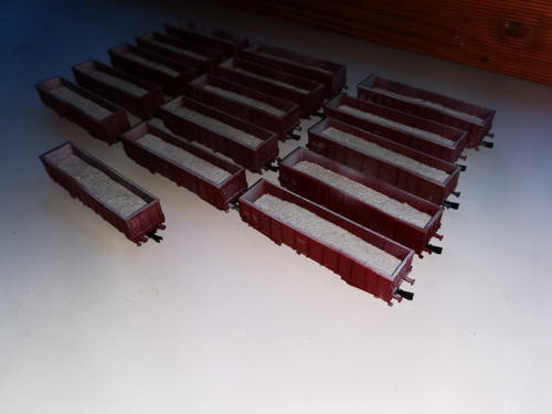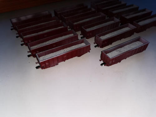 16 Waggons mit PEHO-Clipskupplung. Belöaden und gealtert. SpieleMax Sondersets. 25,00€ pro Wagen.