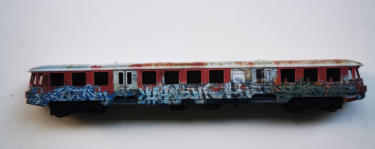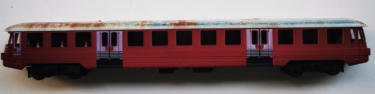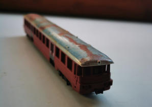 Der Triebwagendummy von KRES, wie er in Dessau steht.